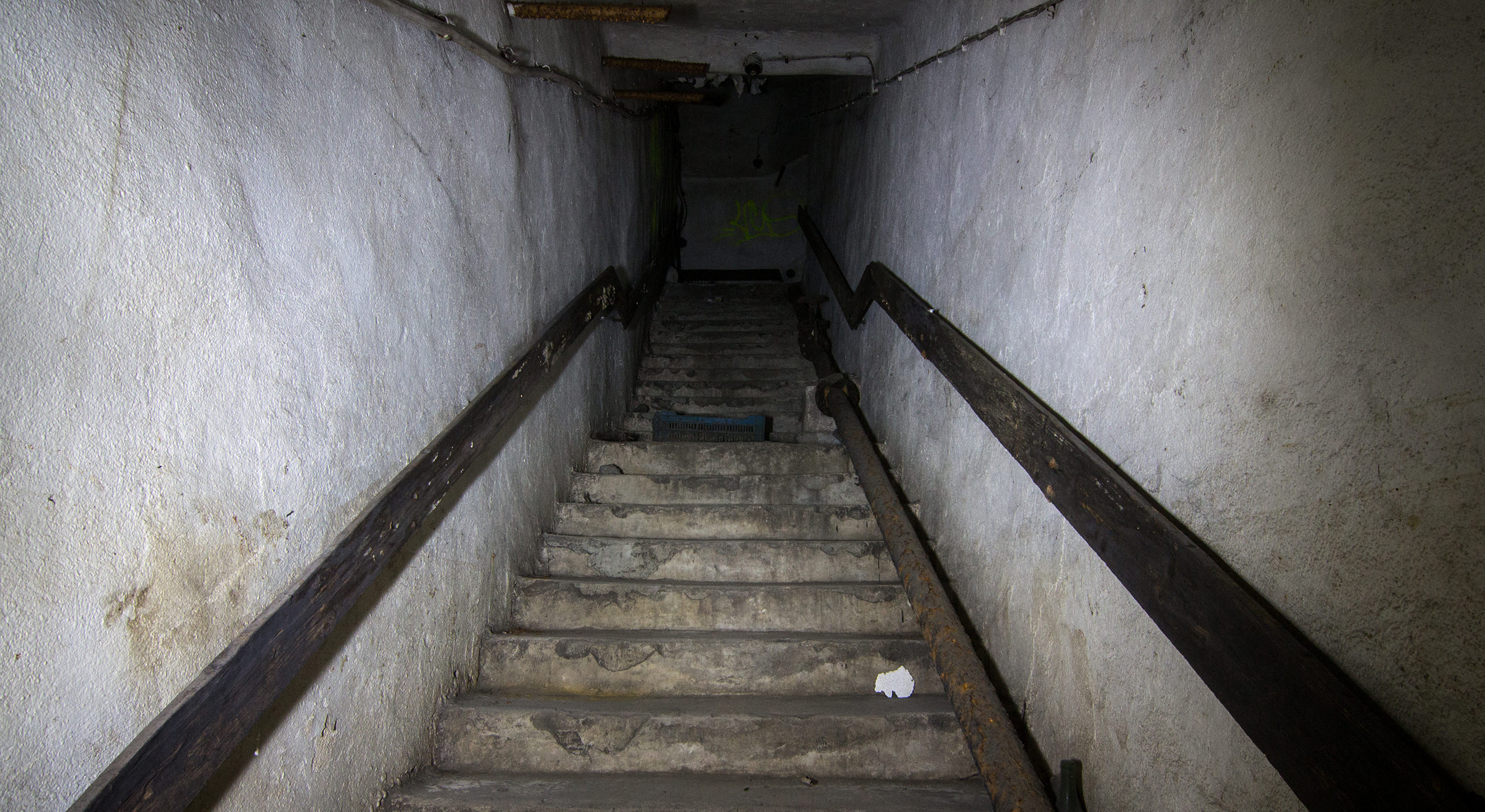 Back out near the entrance, I was photographing the boiler room when I first heard the birds. The bomb shelter had been silent throughout, unnaturally so, all but near the entry hatches where the occasional car would hum past on the road above. Now, that silence was drowned out by a squawking chorus that meant the sun was coming up.