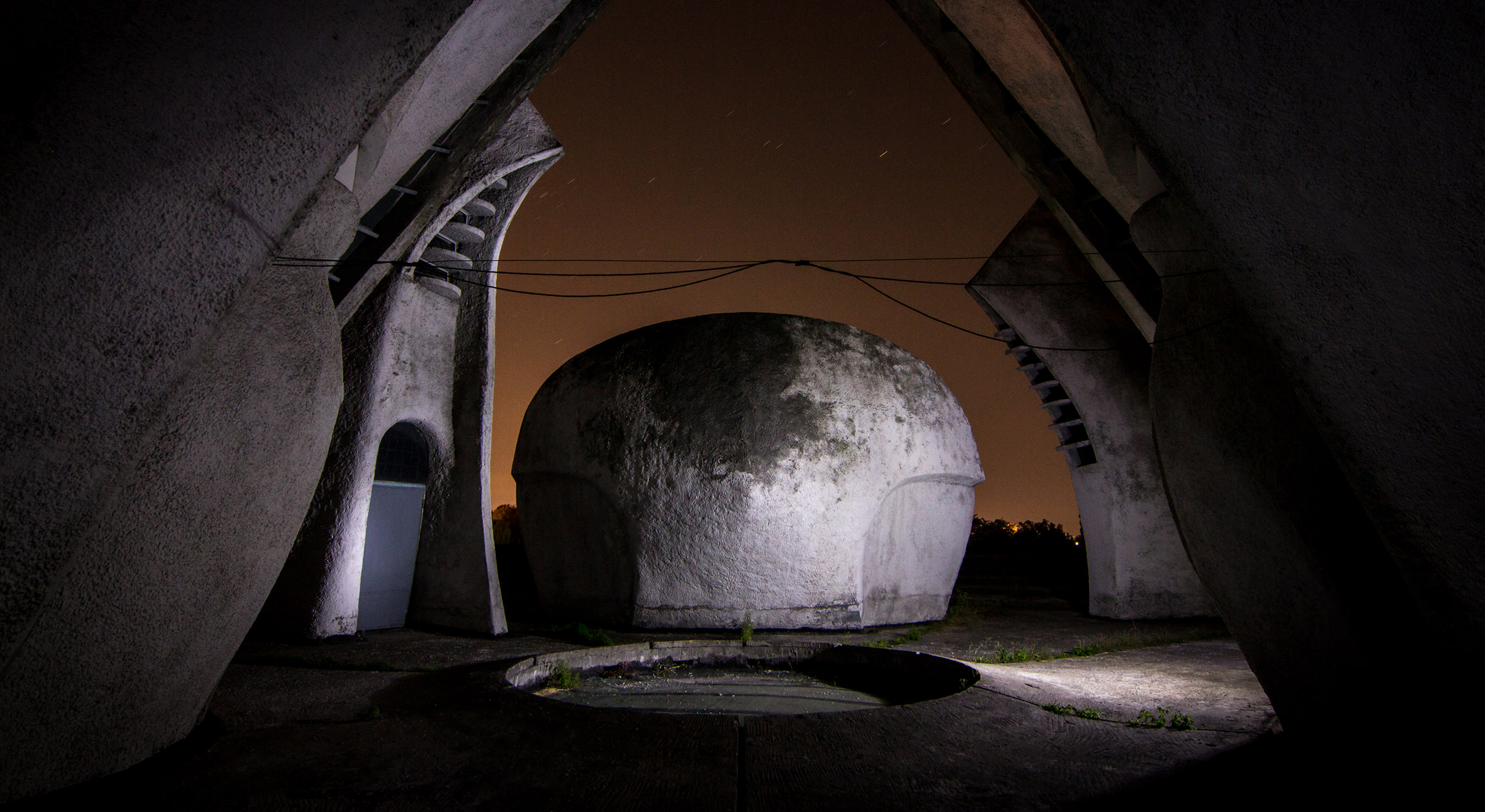 It was sometime around midnight, and we stood on the cracked plaza of the Kyiv Crematorium flashing spotlights up and down the building’s flaking, crusted flanks. It looked more grown, than built; there was nothing macabre about this temple of the dead, this literal terminus, but rather it bubbled and clawed out of the ground in a series of indecipherable gestures. The architecture of an alternate dimension.