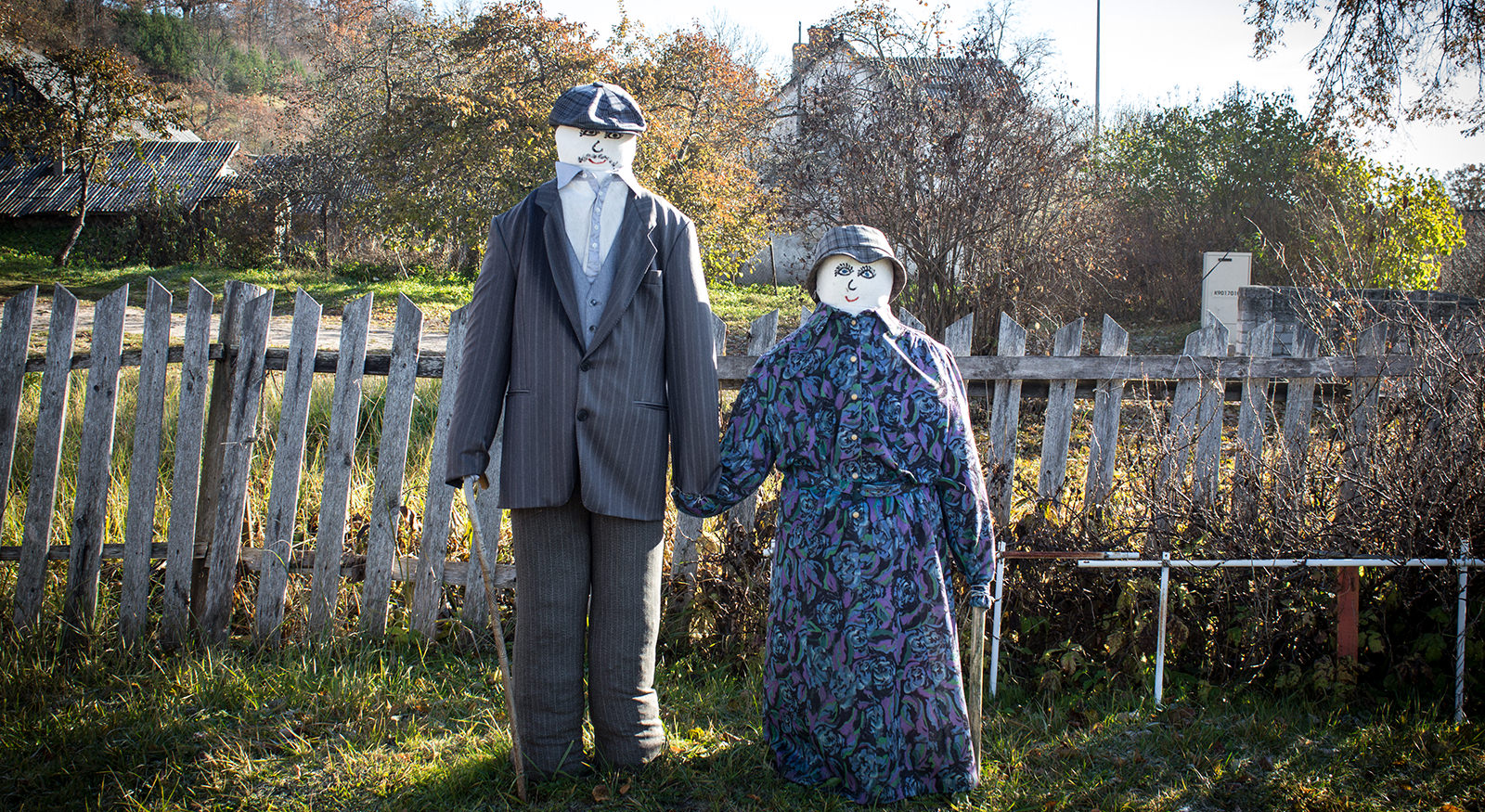We were driving through a village named Sabile when we suddenly saw the dolls. The houses to the right of us opened up to reveal a grassy square, filled from wall to wall with an army of white figures that stood facing us as if on parade. We had traffic behind us though, and a long way yet to go; and so we moved on without even stopping.